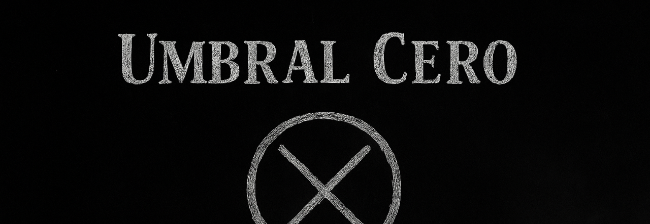 Ilustración minimalista de un reloj marcando las doce en punto sobre fondo negro, estilo Umbral Cero.